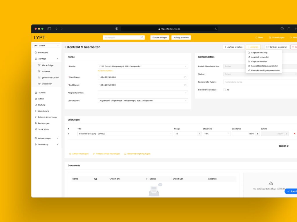 In den Kundeneinstellungen ist nun eine neue Funktion für Kontrakte. Damit wird das Handling von wiederkehrenden Aufträgen oder festen Vereinbarungen mit deinen Kunden noch einfacher.